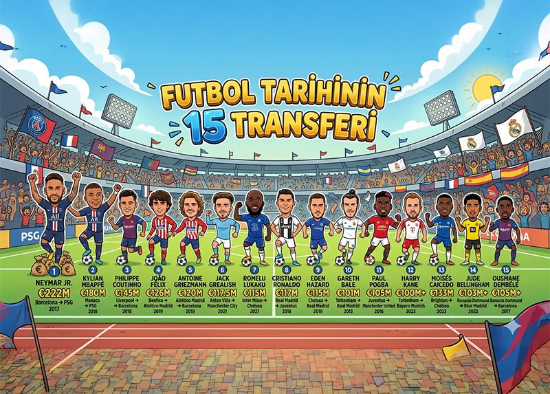 YEŞİL SAHALAR DEĞİL, DARPHANE! İŞTE AYAKLARINA SERVET DÖKÜLEN 15 'ALTIN' ADAM! Futbol tarihinin en pahalı 15 transferi Futbol, kulüplerin sporun en etkileyici yeteneklerini kadrolarına katmak uğruna devasa meblağlar harcamaya istekli oldukları, inanılmaz derecede kârlı bir endüstridir. 21. yüzyılın büyük bir bölümünde, maddi açıdan en varlıklı kulüpler futbola damgasını vurmuş olsa da tarih, tek bir oyuncu için rekor kıran meblağlar harcamanın başarının garantisi olmadığını kanıtlamaktadır. Çoğu zaman başarılı takımlar, en pahalı transferlere rağmen değil, onlara rağmen zafere ulaşır. Aşağıdaki liste; transfer dönemlerinin yarattığı o anlık heyecan (dopamin patlaması) rüzgarına kapılıp giden ve kulüplerinin, kendilerine kalıcı bir şan ve şöhret yolu açmak adına kesenin ağzını sonuna kadar açmasını arzulayan tüm taraftarlar için bir ibret vesikası niteliğinde olmalıdır. Yüksek transfer bedellerinin doğal bir sonucu olarak beraberinde devasa beklentiler de gelir; bu durumun bir sonucu olarak da pek çok oyuncu büyük zorluklar yaşamıştır. İşte transfermarkt.com verilerine dayanılarak hazırlanan, futbol tarihinin en pahalı 15 transferi: 15. Moisés Caicedo — Brighton'dan Chelsea'ye (116 milyon € / 134 milyon $) Günümüzdeki büyük transfer harcamalarının aslan payı Premier Lig kulüpleri tarafından gerçekleştirilmektedir. Ligin "Büyük Altılı"sı (Big Six) olarak anılan devleri, genellikle ligin etkileyici "orta sınıf" kulüplerinin tüm o zorlu keşif ve geliştirme süreçlerini tamamlamasını bekler; ardından, bu kulüplerin ortaya çıkarıp işlediği cevherleri devasa bedeller karşılığında kendi kadrolarına katarlar. Brighton & Hove Albion, Moisés Caicedo'yu 2021 yılında Ekvador kulübü Independiente del Valle'den 5 milyon doların biraz üzerinde bir bedelle transfer etmiş; iki buçuk yıl sonra ise oyuncuyu, bu bedelin neredeyse 27 katı karşılığında Chelsea'ye satmıştır. Caicedo, Stamford Bridge'deki ilk dönemlerinde uyum sorunu yaşayıp zorlansa da, ilerleyen süreçte sergilediği performans yükselişleriyle adını, orta saha mevkisine dair yapılan en üst düzey tartışmaların tam merkezine yazdırmayı başarmıştır. 14. Declan Rice — West Ham'dan Arsenal'e (117 milyon € / 135 milyon $) Chelsea ve Arsenal taraftarları, Caicedo ve Declan Rice transferleri üzerine karşılıklı atışmalara girmekten büyük keyif alırlar. İngiliz oyuncu, Caicedo'nun Batı Londra'ya (Chelsea'ye) benzer bir bedelle transfer olduğu dönemle aynı transfer döneminde, "Topçular"ın (Arsenal'in) kadrosuna katılmıştı; dolayısıyla bu iki transfer arasında bir kıyaslama yapılması son derece doğaldır. West Ham United'ın adeta can damarı olan Rice, Arsenal'e transferinin ardından Emirates Stadyumu'nda da performansının zirvesine çıkarak büyük bir başarı yakalamıştır. Orta sahada inanılmaz derecede istikrarlı bir performans sergileyen Rice, Şampiyonlar Ligi'nin son aşamalarında öne çıkan performanslar sergiledi ve kulübe katıldığından beri Arsenal'in şampiyonluk mücadelesine öncülük etti. Müthiş bir şutör olan Rice, sezonda bir veya iki önemli gol atıyor ve özellikle mevcut ortamda çok önemli olan mükemmel bir duran top ustası. 13. Cristiano Ronaldo - Real Madrid'den Juventus'a (117 milyon € / 135 milyon $) Daha sonra Tottenham Hotspur'da çalışacak olan eski Juventus sportif direktörü Fabio Paratici, Bianconeri'nin eksik parçasını tamamlamak için fırsatı değerlendirdi. Juve, o dönemde Serie A'yı adeta moda olmuş gibi kazanıyordu. Bu başarıyı sürdürmeye yardımcı olacak birine ihtiyaçları yoktu. Bunun yerine, Yaşlı Kadın Şampiyonlar Ligi gecelerinde bir kahraman arıyordu. Beş kez şampiyon olan Cristiano Ronaldo'dan daha iyisi kim olabilir ki? Tüm zamanların en büyük oyuncusu 2018'de Torino'ya transfer oldu ve etkileyici bir hızla gol atmaya devam etti. Ancak Ronaldo, Juve'nin kıtayı yeniden kazanma hayalini gerçekleştiremedi ve transferin mirası hala tartışılırken üç yıl sonra kulüpten ayrıldı. 12. Jack Grealish—Aston Villa'dan Man City'ye (118 milyon €/137 milyon $) Manchester City, 2021'de Aston Villa'dan özgür ruhlu Birminghamlı oyuncuyu almak için o zamanlar Britanya rekoru olan bir ücret ödedi. Jack Grealish, Villans'ın iki sezon boyunca Premier Lig'deki yerini korumasına yardımcı oldu ve bir sonraki adımı atmaya hazırdı. Pep Guardiola, Grealish'in enerjisini bir nebze de olsa tüketmiş olsa da, onu belirli bir işlevi yerine getiren bir kanat oyuncusuna dönüştürdü; ancak İngiliz oyuncu uyum sağladı ve City'nin 2022-23 sezonundaki üçleme başarısında önemli bir rol oynadı. Kimileri o sezon yaptığı katkıların bu büyük paraya değdiğini savunabilir, ancak Grealish Manchester'da form ve fiziksel kondisyon açısından zorluklar yaşadı. 11. Antoine Griezmann—Atlético Madrid'den Barcelona'ya (120 milyon €/139 milyon $) Muhtemelen bu listedeki son talihsiz Barcelona transferinin bu olmadığını öğrenince şaşırmayacaksınız. Barça’nın birbirini izleyen büyük harcama serisi, 2019 yılında Atlético Madrid’den Antoine Griezmann’ın transferini de içeriyordu; ancak Fransız oyuncu, kulübün DNA’sı için hayati önem taşıyan 4-3-3 dizilimine uyum sağlamakta zorlandı. Genel olarak Griezmann transferi; teknik direktörden, ikinci bir forveti kendisine hiç de aşina olmadığı bir role zorla sığdırmasını bekleyen, yetersiz ve basiretsiz bir Barcelona yönetiminin eksikliklerini ve dar görüşlülüğünü gözler önüne serdi. Ernesto Valverde, Quique Setién ve Ronald Koeman’ın hepsi denedi; ancak Griezmann’ı takıma entegre etme konusunda nihayetinde başarısız oldular. Griezmann ise, Atléti’ye, kulübün kendisini Barça’ya sattığı bedelin üçte 