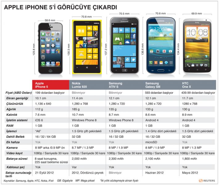 Bu tabloya bir göz atın ve hangi akıllı telefonun 2012'nin en iyisi olduğuna siz karar verin...