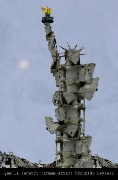 Tanınmış Suriyeli sanatçı Tammam Azzam'ın Özgürlük Heykeli adlı yapıtı.Bugünden sonra en ünlü yapıtı olacağı kesin.