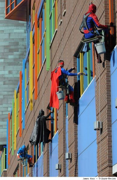 Süper kahramanlar Çocuk Hastanesinin Camını Temizliyorlar