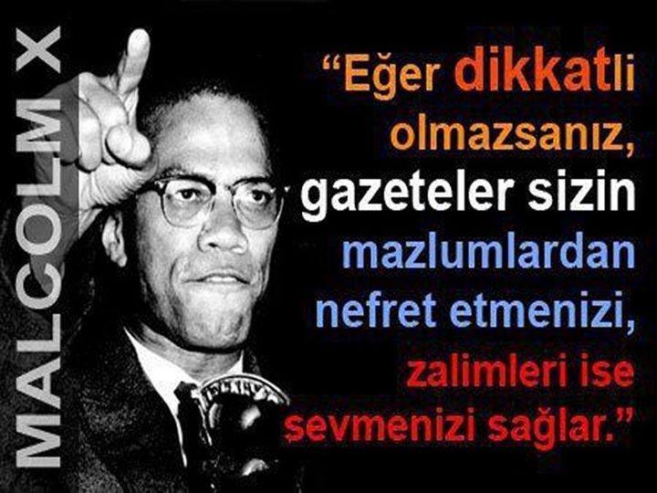 Malcom X: Eğer dikkatli olmazsanız, gazeteler sizin mazlumlardan nefret etmenizi, zalimleri ise sevmenizi sağlar.