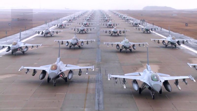 Güney Kore, son zamanlarda artan Kuzey Kore tehdidine karşı bir tür gövde gösterisi yaptı ve 100 F-16'yı havalanmaya hazır halde piste çıkardı.