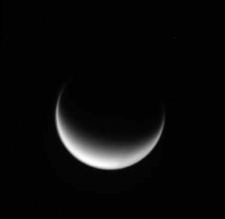 Fotoğraftaki gri çizgiler, Satürn`ün uydusu Titan`ın çevresinde yer alan toz ve birikintilerinden oluşuyor.