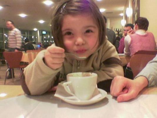 Ufaklık salep içiyor. Sıcak geldi üflüyoruz